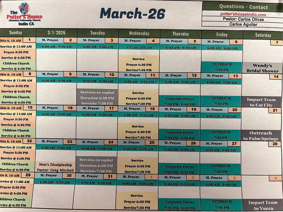 Men’s Bible Study/breakfast is now back in session: Saturdays 9 AM, doors open 8AM for prayer. Studies will be conducted by Pastor Carlos Olivas. Bring your Bibles, notes and questions!
